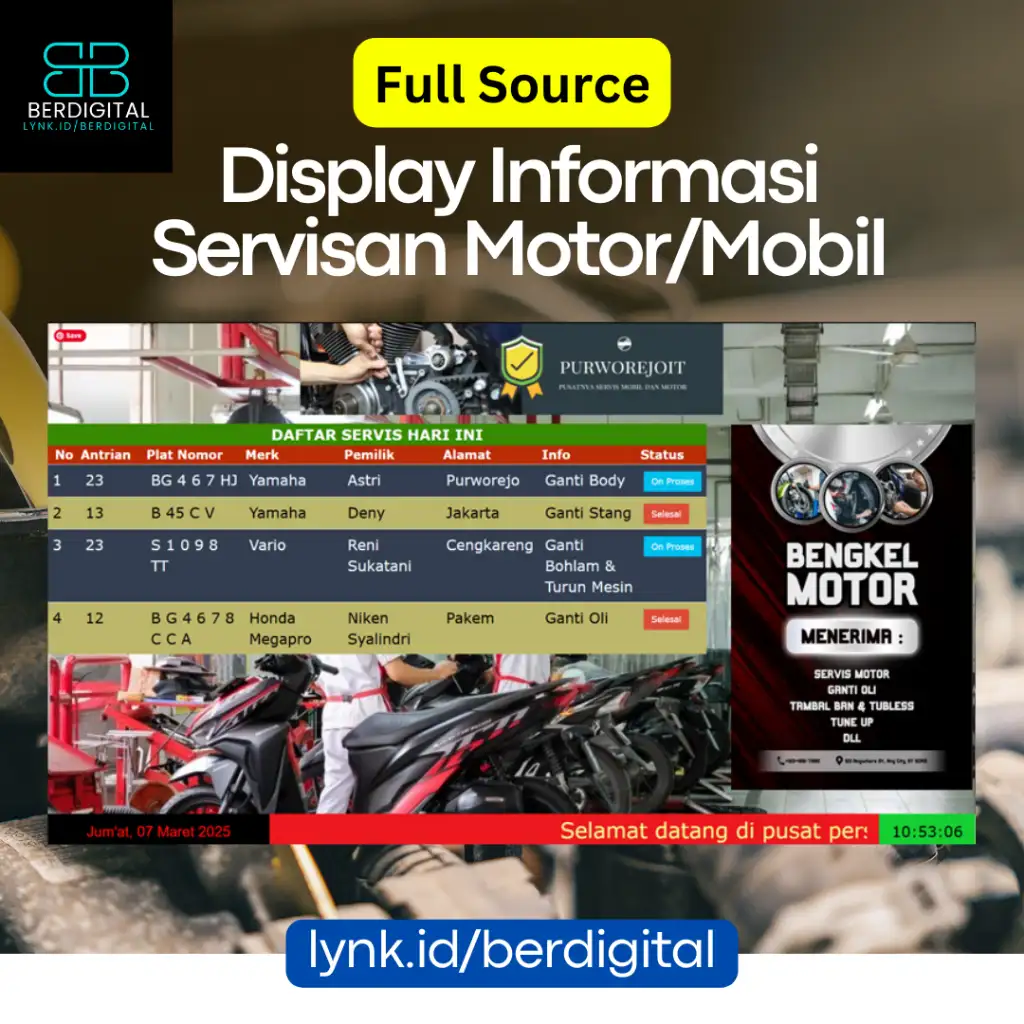 Display Informasi Service Motor/Mobil Full Source Code PHP MySQL