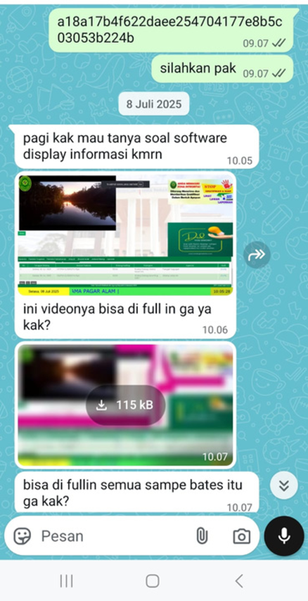 Software display informasi untuk Servis Motor/MobilKelebihan: - Instalasi mudah dan simple - klik2x langsung install, tidak perlu ribet seting setingFasilitas: - Menu admin untuk kustomisasi tampilan - Running teks - Banner/slider - Data konsumen servis - Pemanggilan konsumen dengan text to speech