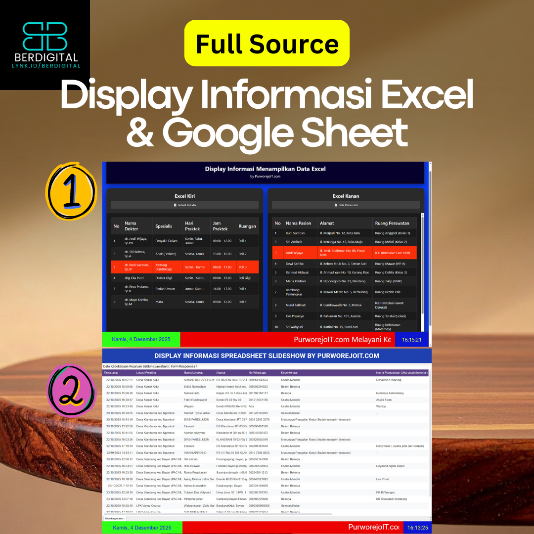 Display Informasi Excel & Google Sheet